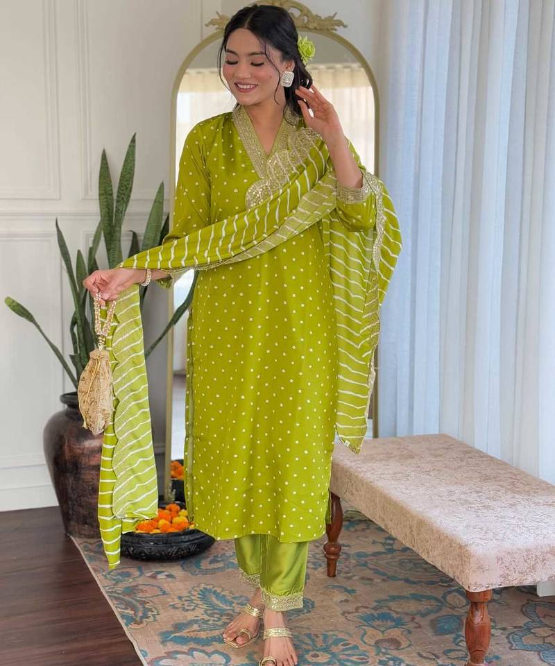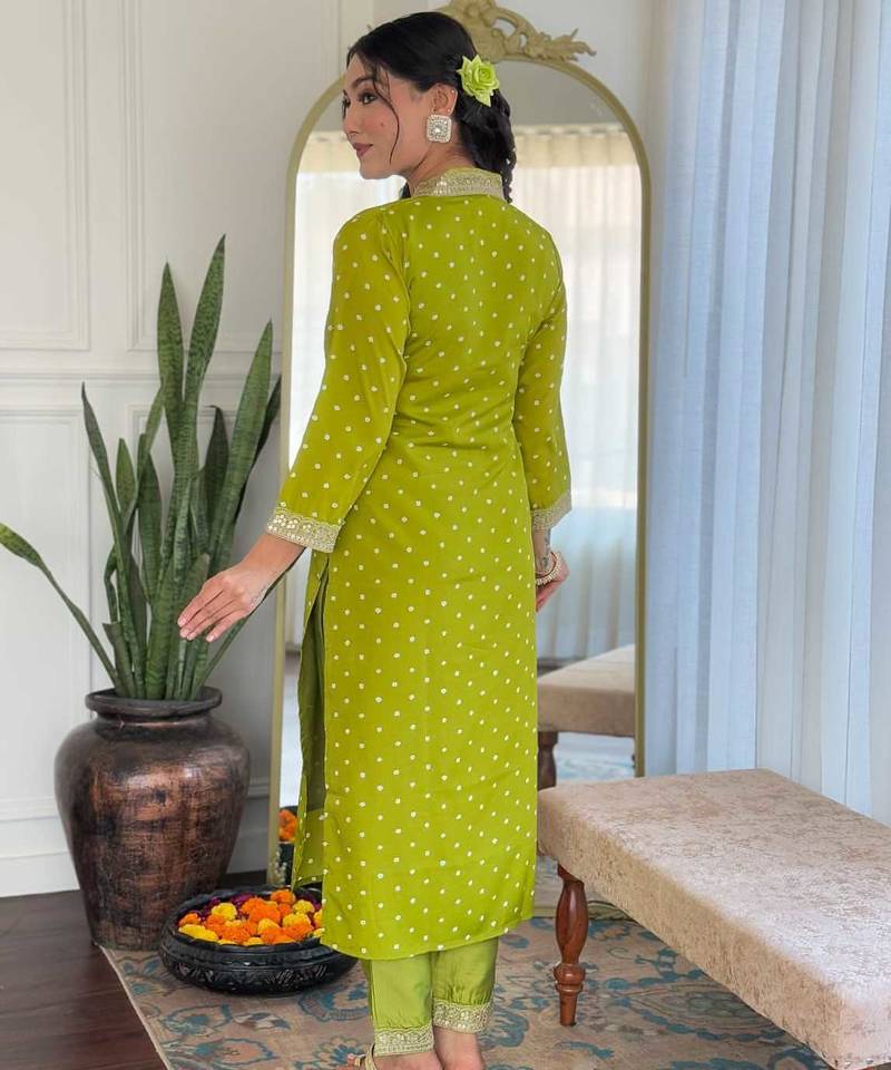 | Product Name | Women's Viscose Sequin Embroidered Parrot Green Kurta Pant Set With Muslin Dupatta | |
