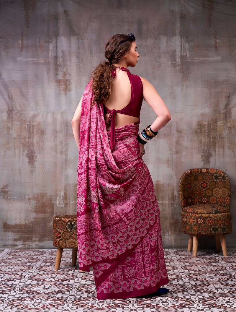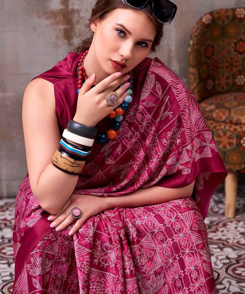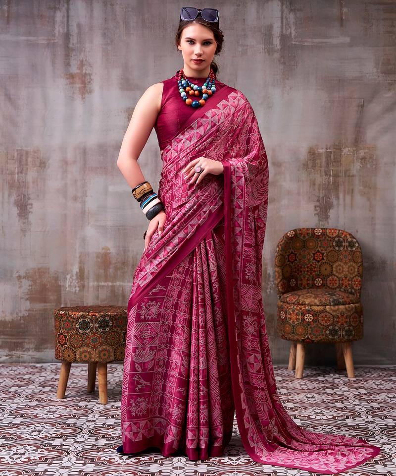 | • | Saree | : | Color- Magenta / Fabric- Satin |