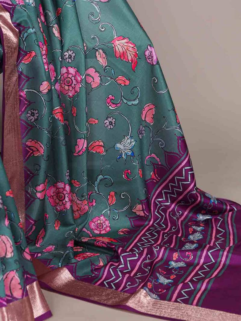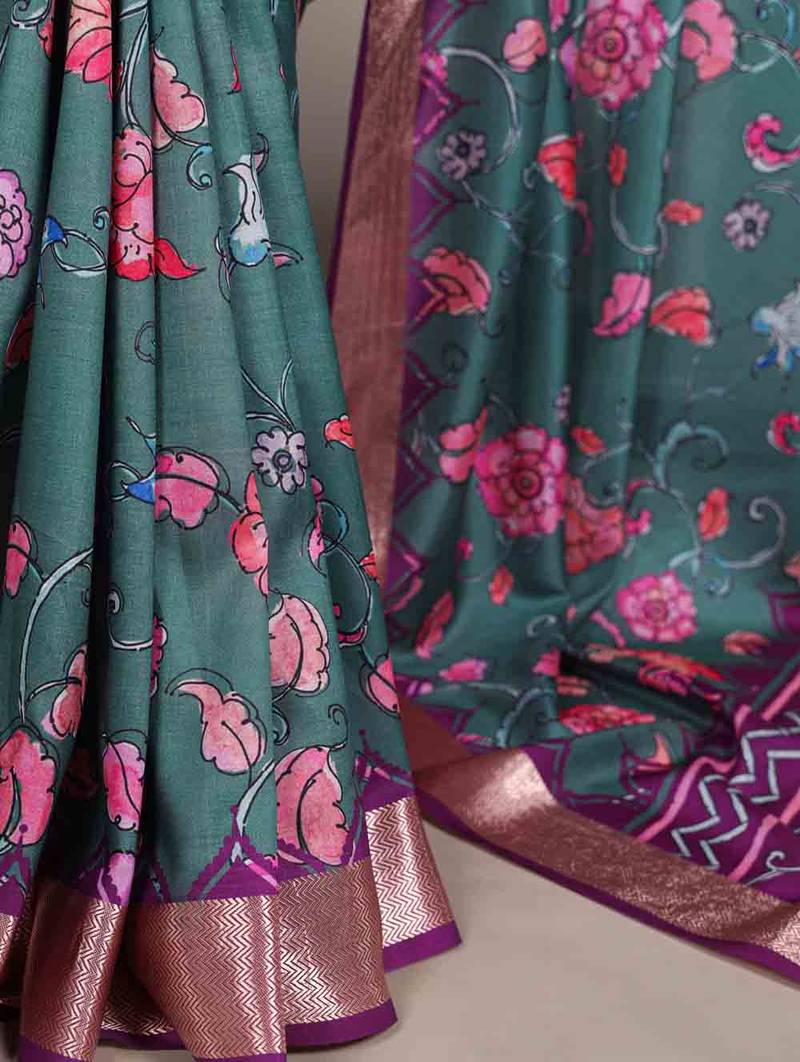| • | Saree | : | Color- Teal / Fabric- Tussar Silk |