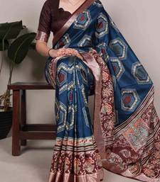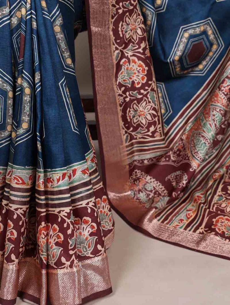 Traditional tasar silk printed saree with stylish viscose border