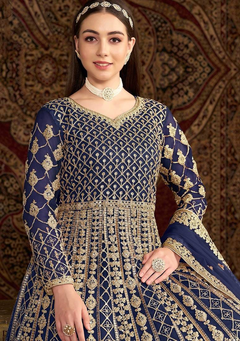 | Product Name | Blue Net Embroidery & Sequins Semi Stitched Suit Size Up To 42 | |