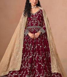 Maroon georgette zari embroidery & sequins semi stitched suit size up to 42