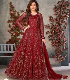 Maroon net zari embroidery & sequins semi stitched suit size up to 42