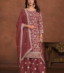 Mauve georgette embroidery & sequins semi stitched suit size up to 42