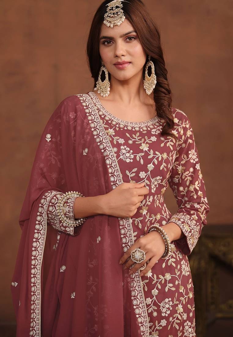 | Product Name | Mauve Georgette Embroidery & Sequins Semi Stitched Suit Size Up To 42 | |