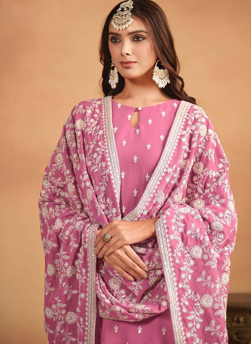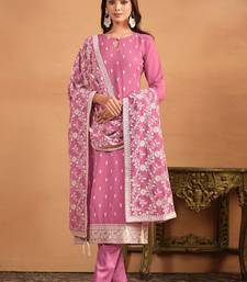 Pink georgette embroidery & sequins semi stitched suit size up to 42