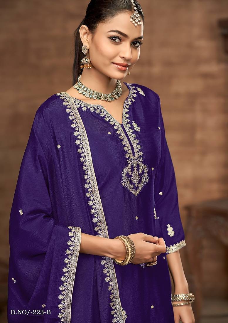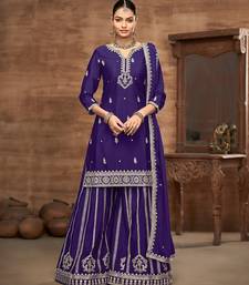 Purple chinnon zari embroidery & sequins free size stitch suit size up to 42 stitched