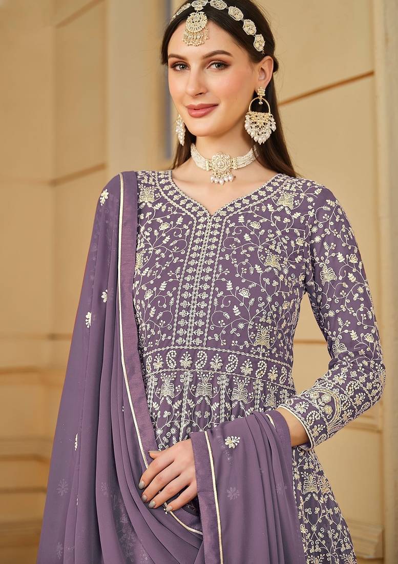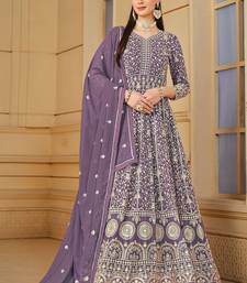 Purple georgette embroidered & sequins semi stitched suit size up to 42