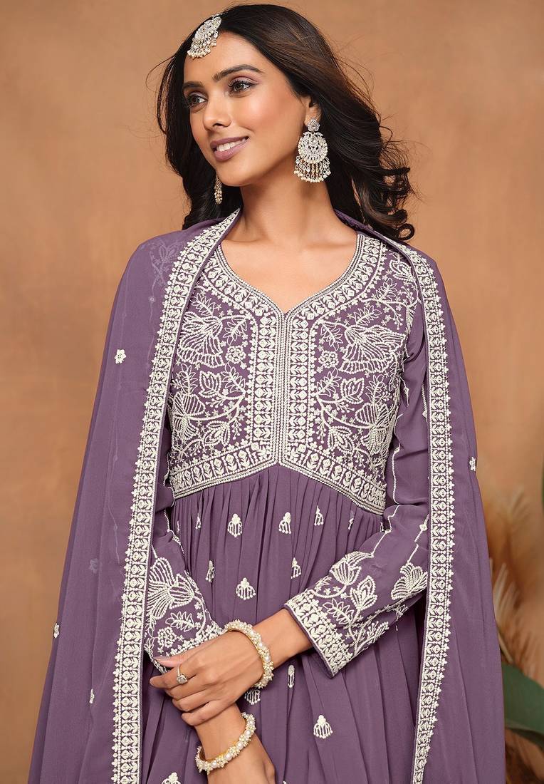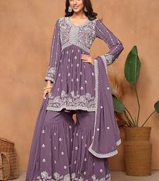 Purple georgette embroidery & sequins semi stitched suit size up to 42