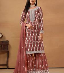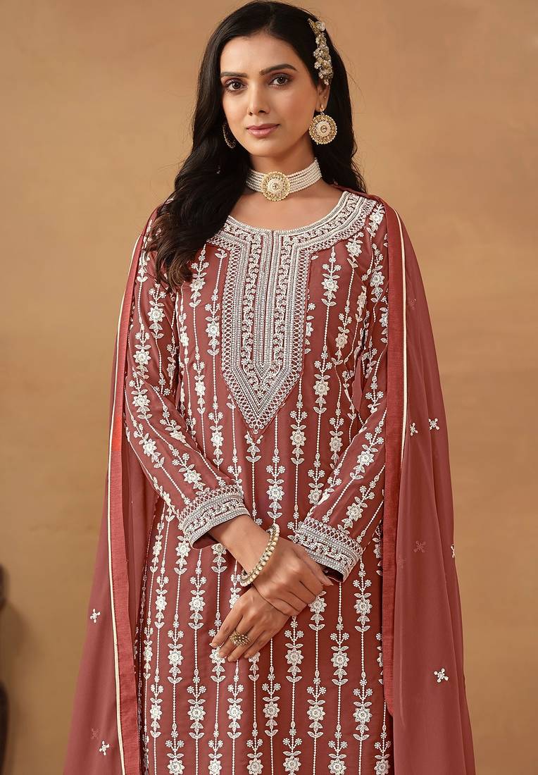 Rose gold georgette embroidery & sequins semi stitched suit size up to 42
