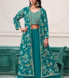 Turquoise blue georgette zari embroidery & sequins free size stitch suit size up to 42 stitched