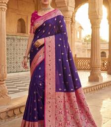 Violet soft banarasi silk saree with zari weaving meenakari design