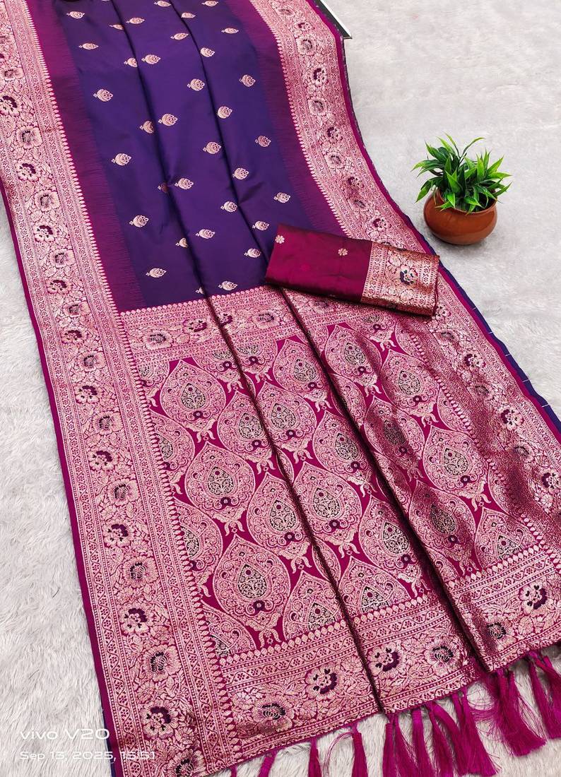 | Product Name | Violet Soft Banarasi Silk Saree With Zari Weaving Meenakari Design | |