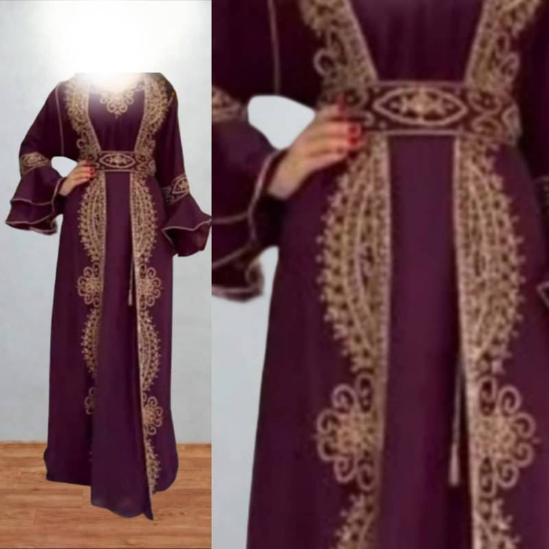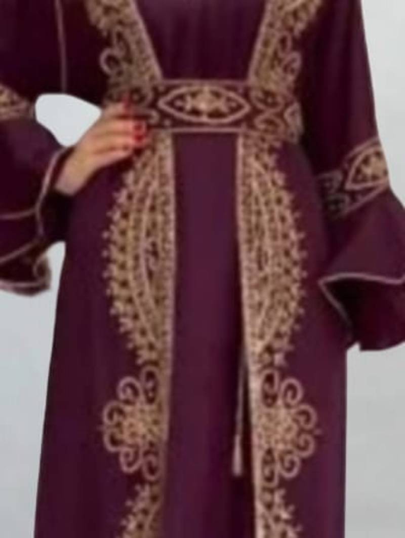 Product Name Luxurious Burgundy Kaftan With Gold Work Stitched Dress