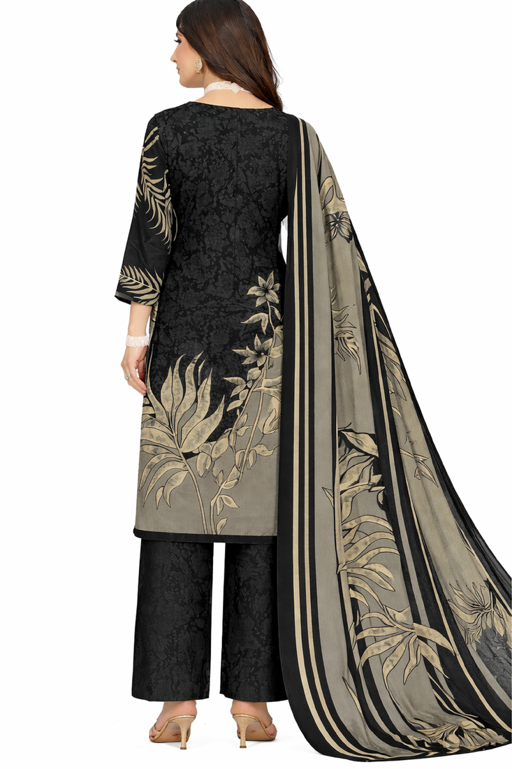 | Product Name | Black Color Crepe Silk Printed Women Unstitched Dress Material | |