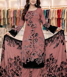 Pink color crepe silk printed women unstitched dress material
