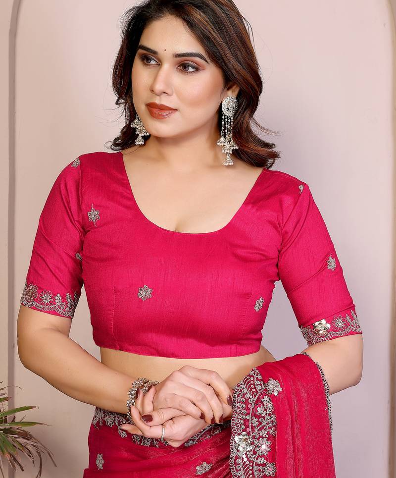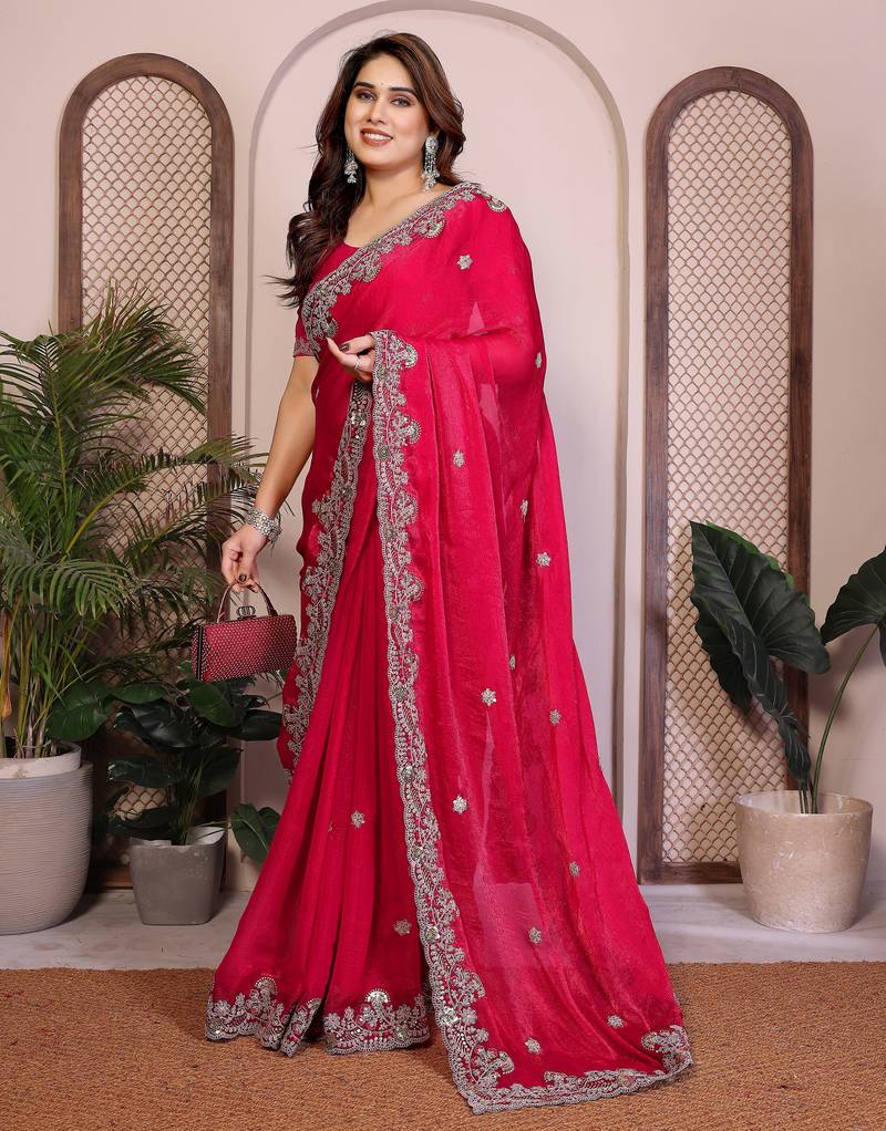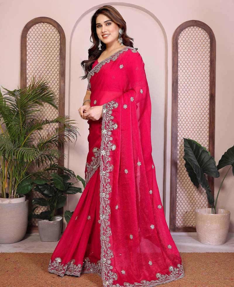 | Product Name | Enchanting Rani Pink Fendy Silk Multi Sequins Embroidered Saree With Banglory Silk Blouse | |