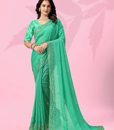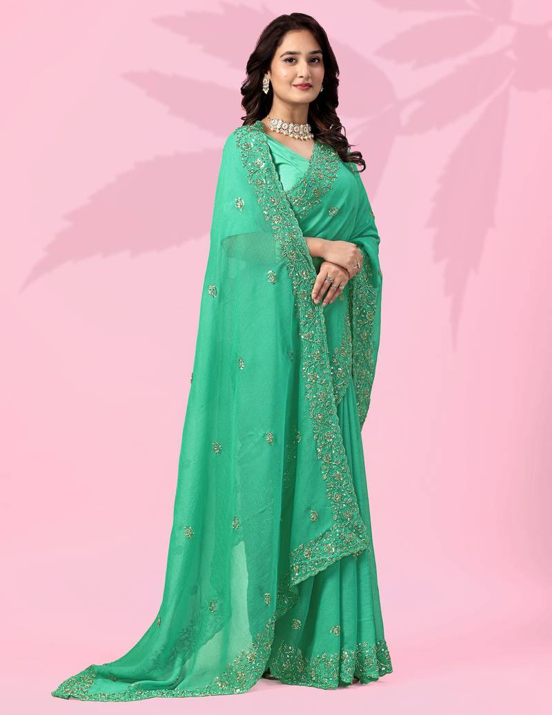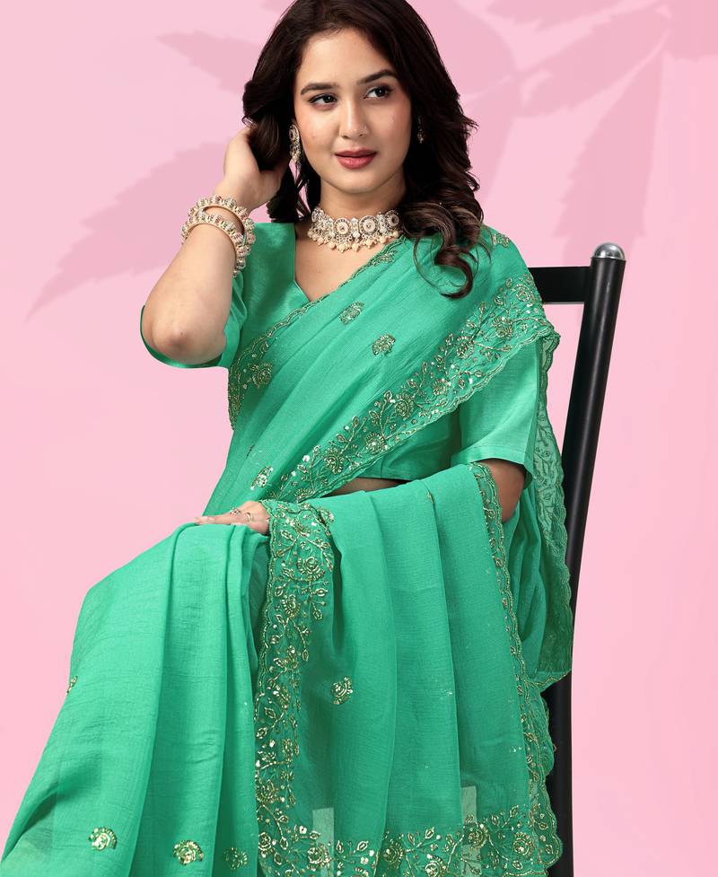 Product Name Pleasant Green Art Silk Thread And Sequins Embroidered Indian Wedding Saree