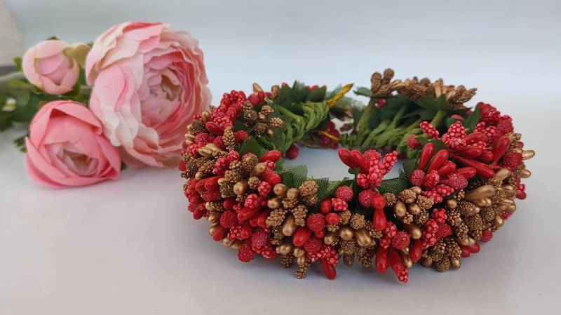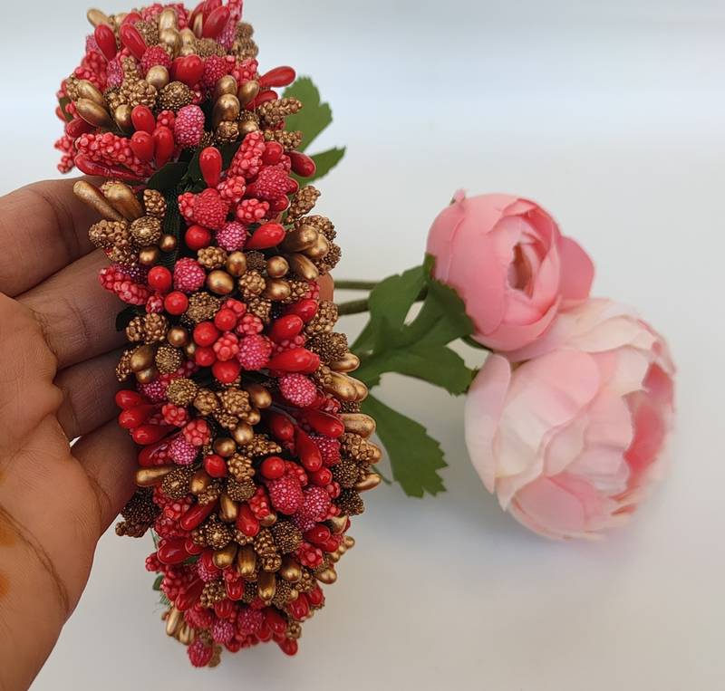 | Product Name | Red And Gold Pollens Bridal Gajra | |