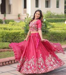 | Product Name | Pink Georgette Lehenga Choli With Gold Zari And Sequins Embroidery | |