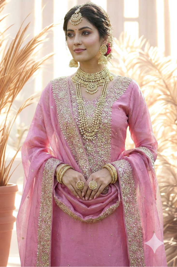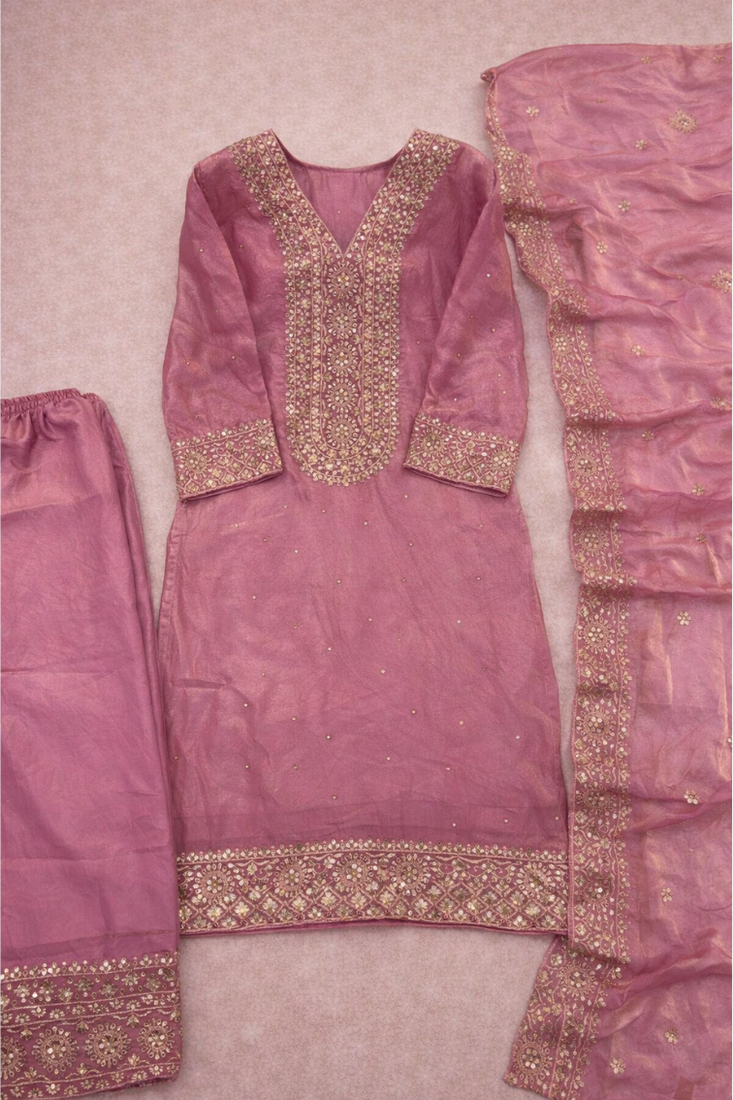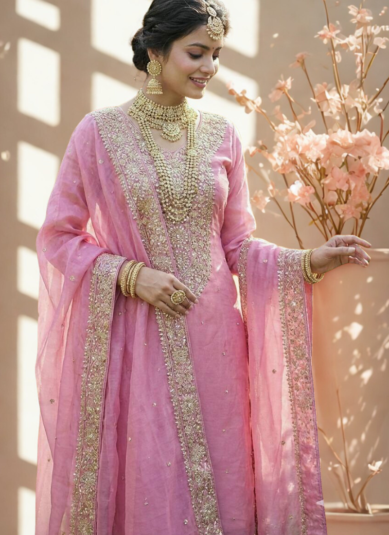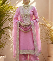 | Product Name | Pink Pure Silk Kurta Palazzo And Dupatta Embroidered Work 3pc Set | |