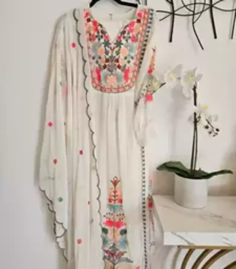 | Product Name | White Floral Embroidered Kurta Set With Duppata And Palazzo Pant | |