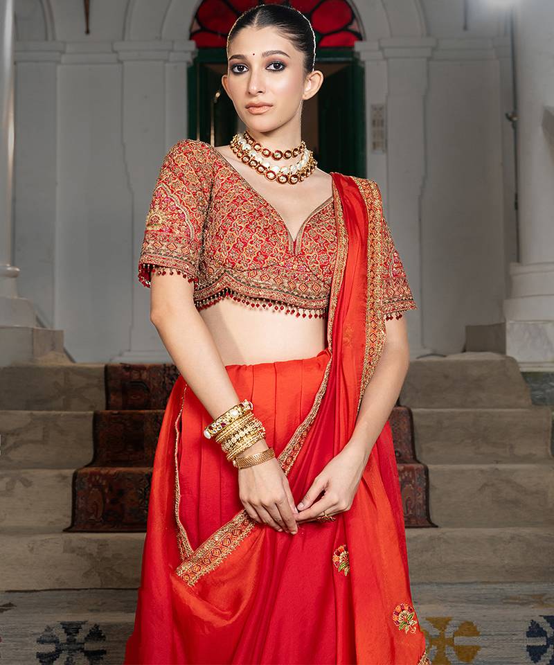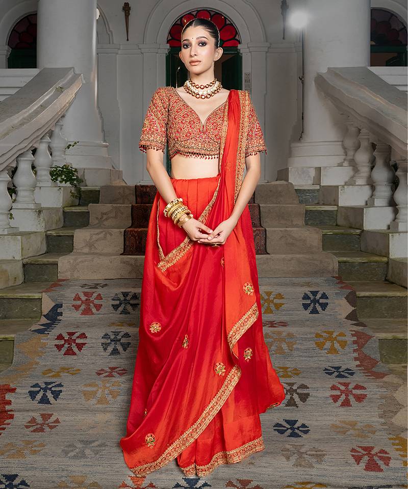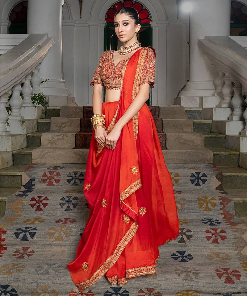 | Product Description | This Red Embroidered Organza Saree Set Exudes Festive Elegance With Its Delicate Embroidery And Sheer Texture. The Lightweight Organza Fabric Creates A Graceful Silhouette While Adding A Touch Of Sophistication. Styled With A Matching Blouse, It Is Perfect For Weddings, Receptions, And Celebratory Occasions.