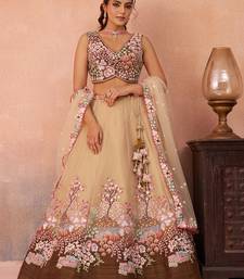| Product Description | • Lehenga : Elegant Semi Stitched Lehenga Set Crafted In Premium Ombre Beige And Brown Net Fabric With Zarkans, Heavy Sequins And Coding Work Has A Thread Embroidery Work. The Lehenga Features A 4.3 Meter Flair With A Colourful Heavy Border On The Hemline And Is Supported With Double Shantoon Inner, Can Can 12 & 18 Inches And Buckram 4 And 12 Inches For A Perfect Shape.