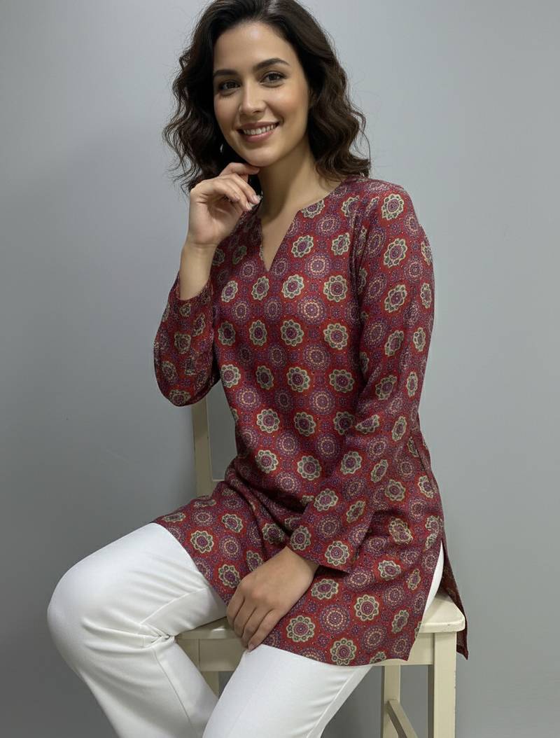 | Product Description | Crafted From Heavy Maslin Fabric With Vibrant Digital Print Work For A Rich And Elegant Look. Features A Stylish Fancy Sleeves Pattern That Adds A Modern And Trendy Touch. Designed For Comfort And Durability, Perfect For Both Casual And Festive Wear. Available In Multiple Sizes: S (36”), M (38”), L (40”), Xl (42”), Xxl (44”) For A Perfect Fit. Comfortable 30 Inch Length, Ideal For Pairing With Jeans, Palazzos, Or Skirts. |