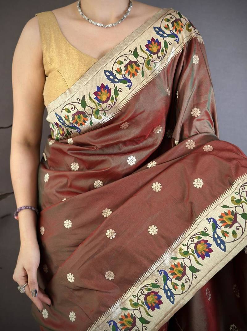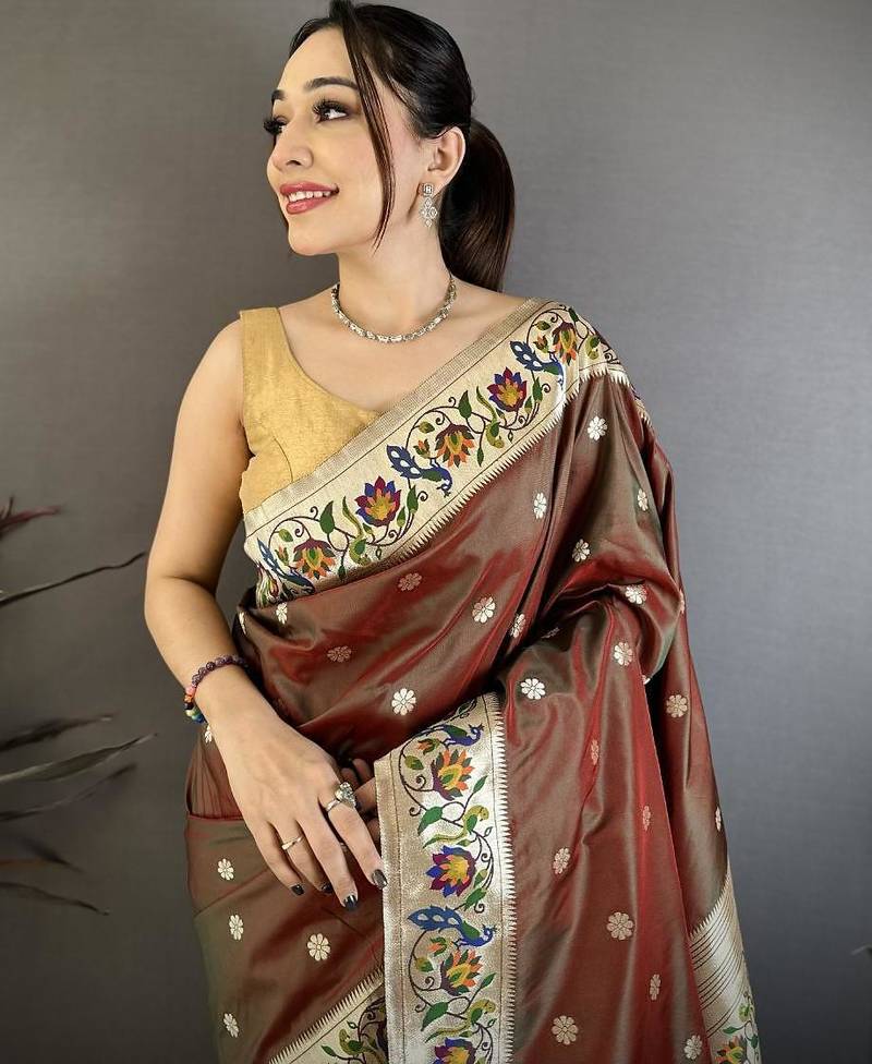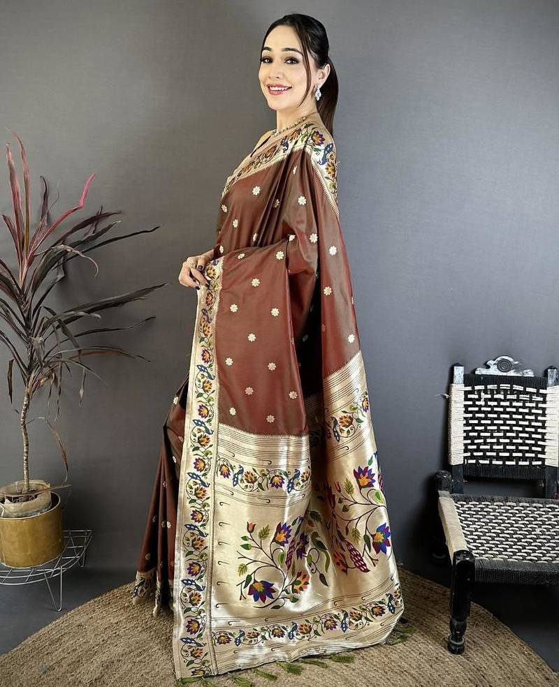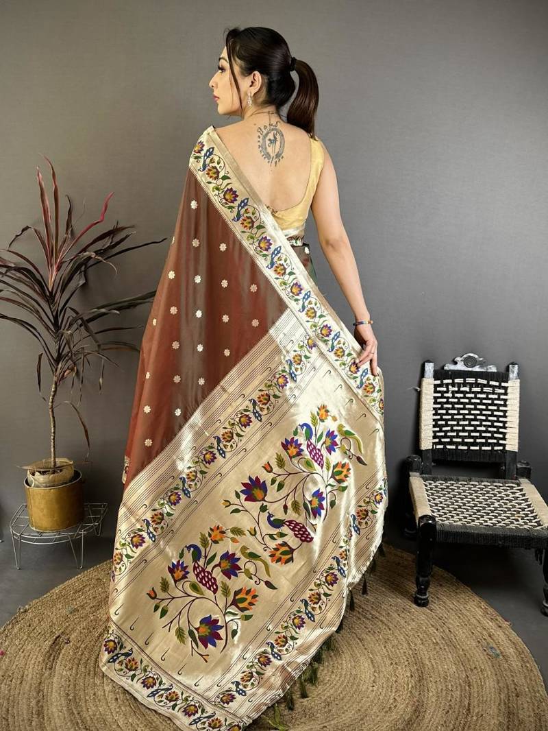 Product Name Brown Color Zari Woven Paithani Silk Saree With Blouse