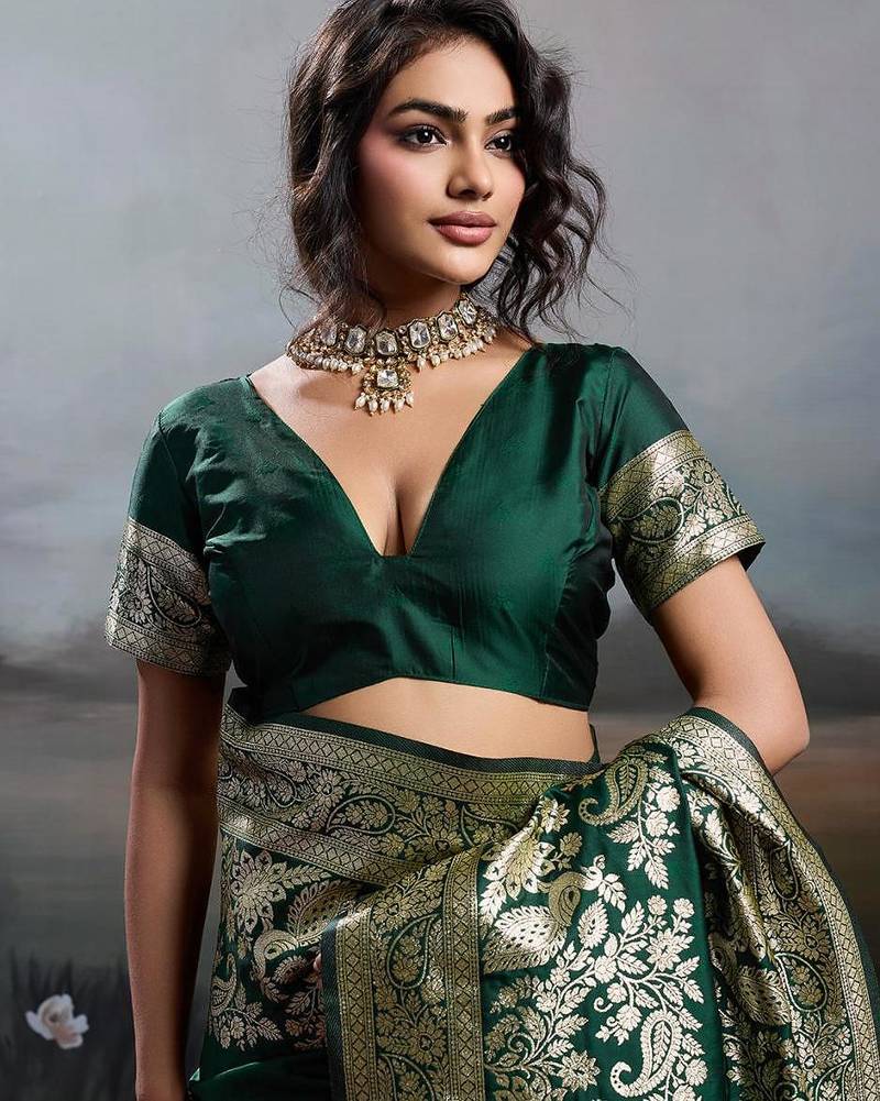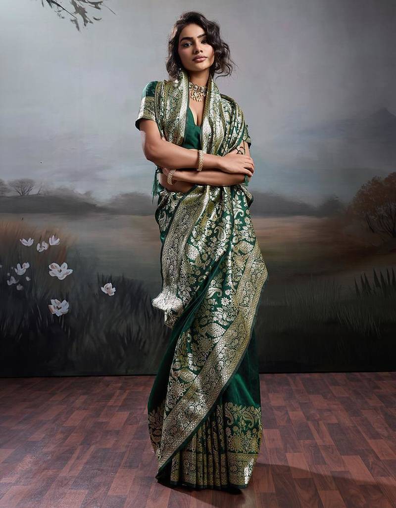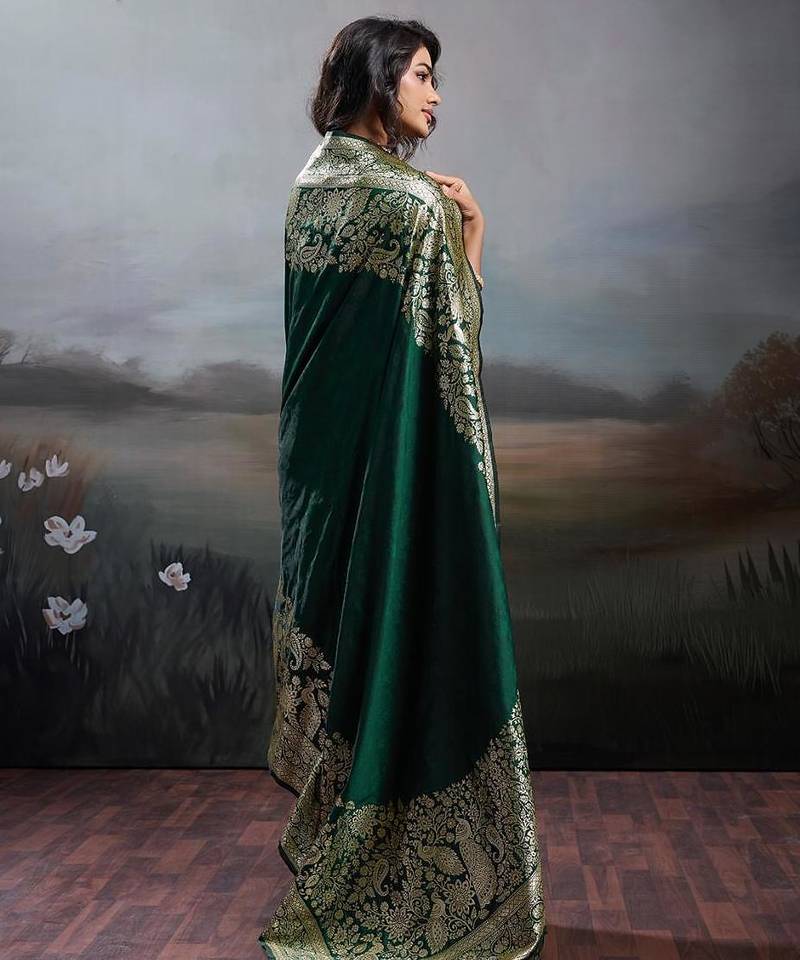 Product Name Dark Green Color Silk Blend Zari Weaving Work Saree With Blouese