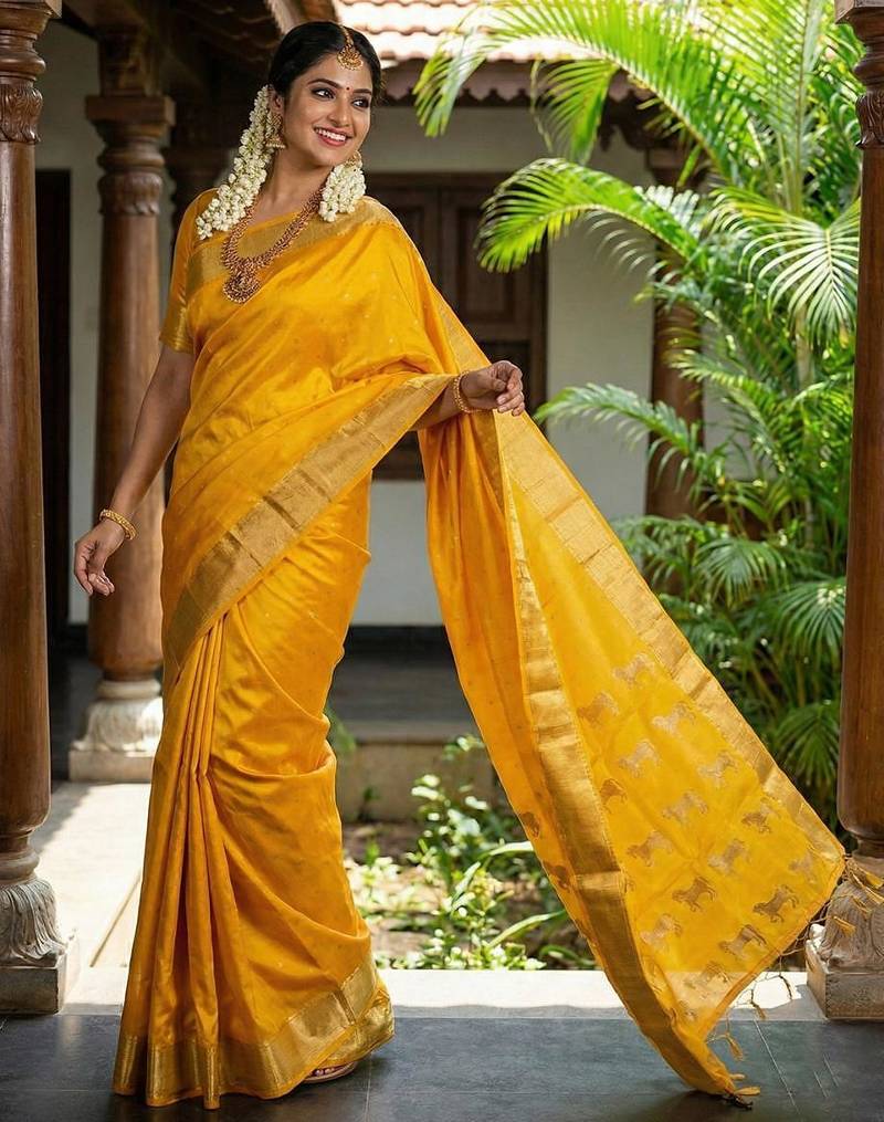 | • | Saree | : | Color- Gold / Fabric- Silk |