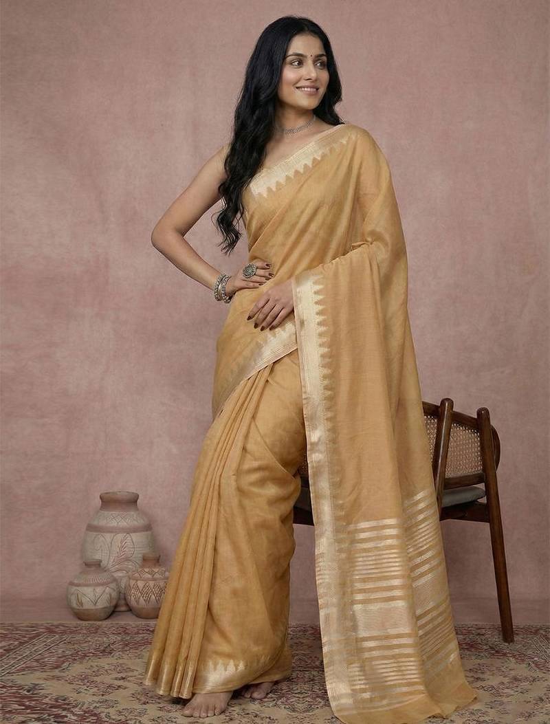 | Product Name | Golden Color Cotton Zari Temple Border Casual Saree With Blouse | |