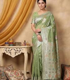 Light green color linen cotton zari woven exclusive saree with blouse