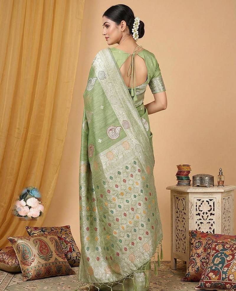 | Product Name | Light Green Color Linen Cotton Zari Woven Exclusive Saree With Blouse | |