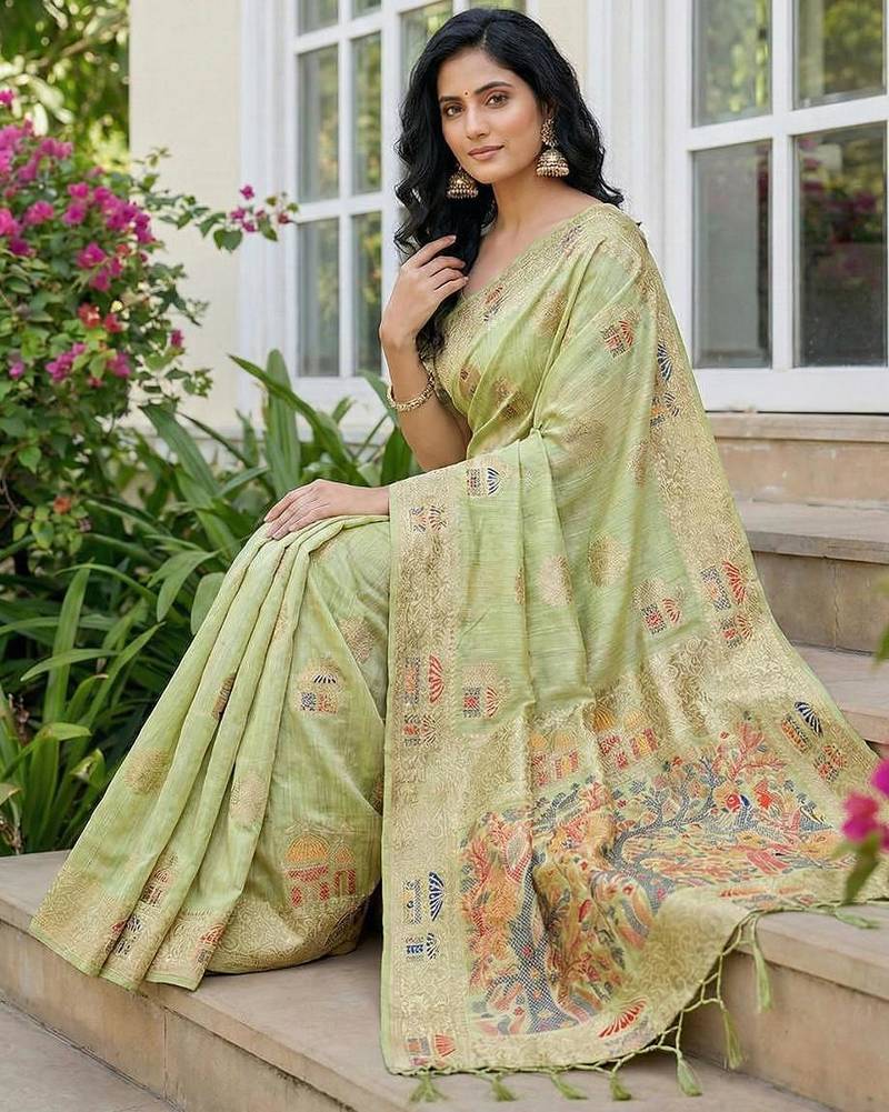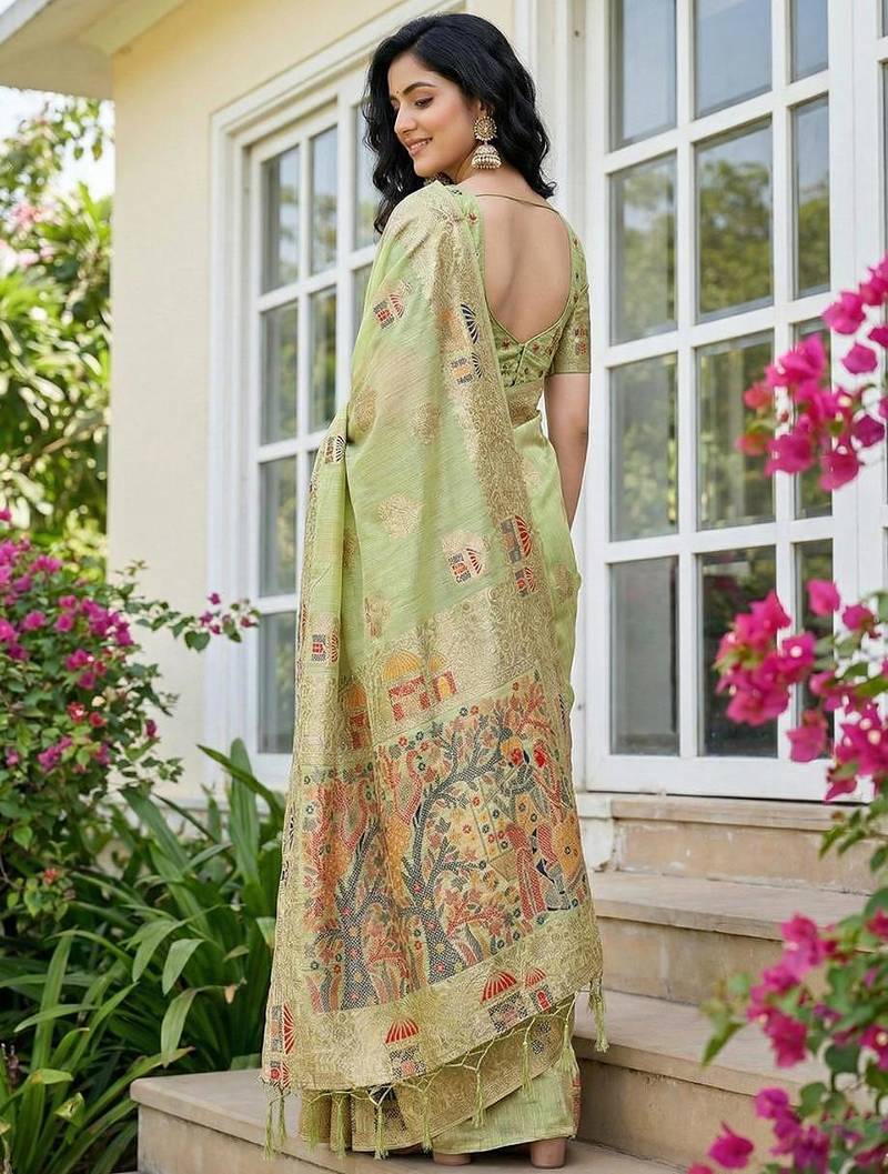 Product Name Light Green Color Woven Work Soft Linen Cotton Saree With Blouse