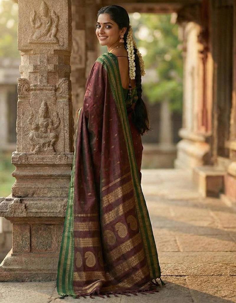 Product Name Maroon Color Soft Silk Zari Woven Women's Beautiful Saree With Blouse