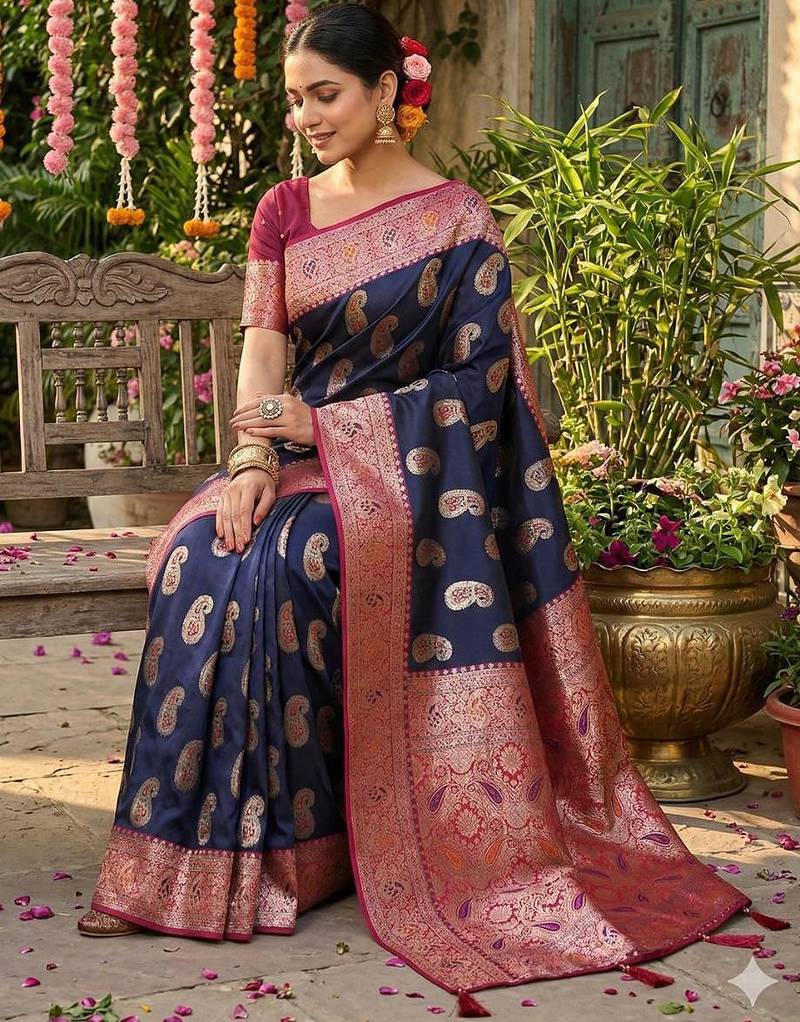 | Product Name | Navyblue Color Silk Blend Zari Weaving Work Saree With Blouse | |