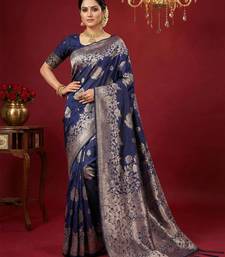 Nay blue color woven work silk blend saree with blouse
