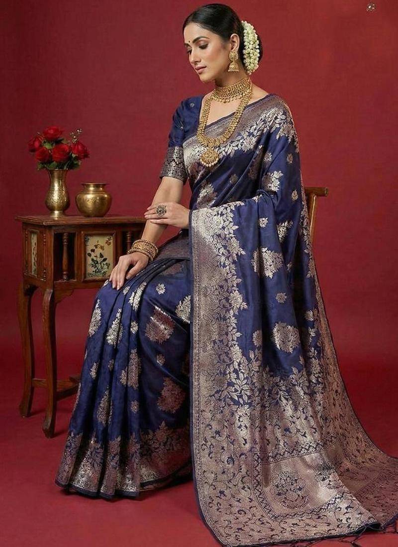 | • | Saree | : | Color- Navy Blue / Fabric- Silk Blend |
