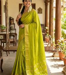 Parrot green  color print & zariw woven work soft silk saree with blouse