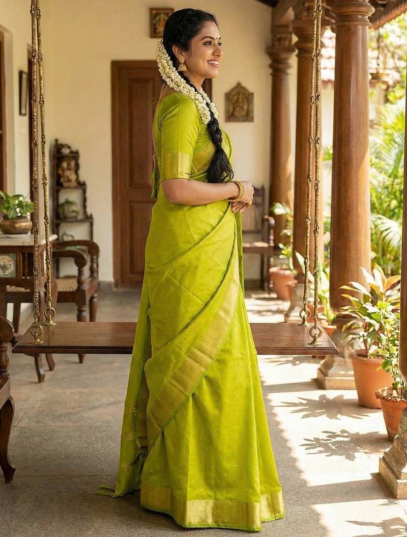 Parrot green color print & zariw woven work soft silk saree with blouse