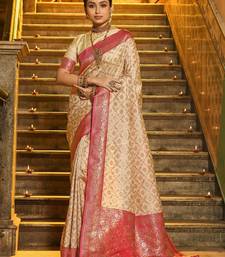 Pink color banarasi silk zari weaving work saree with blouese