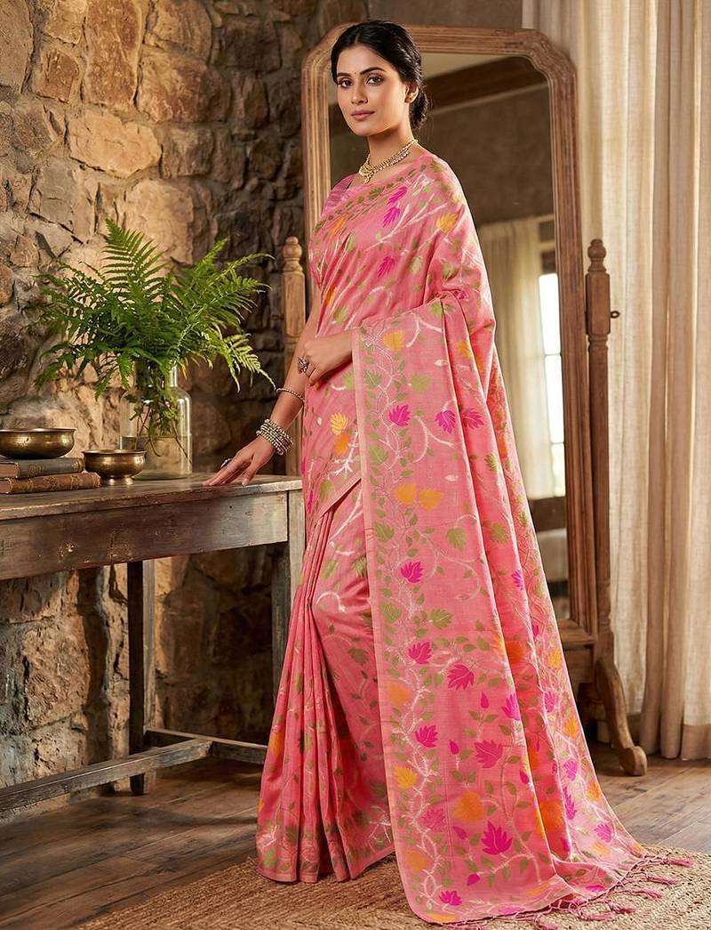 | Product Name | Pink Color Woven Work Linen Cotton Party Wear Saree With Blouse | |
