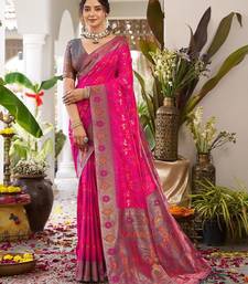 Product Name Pink Color Woven Work Soft Silk Party Wear Saree With Blouse