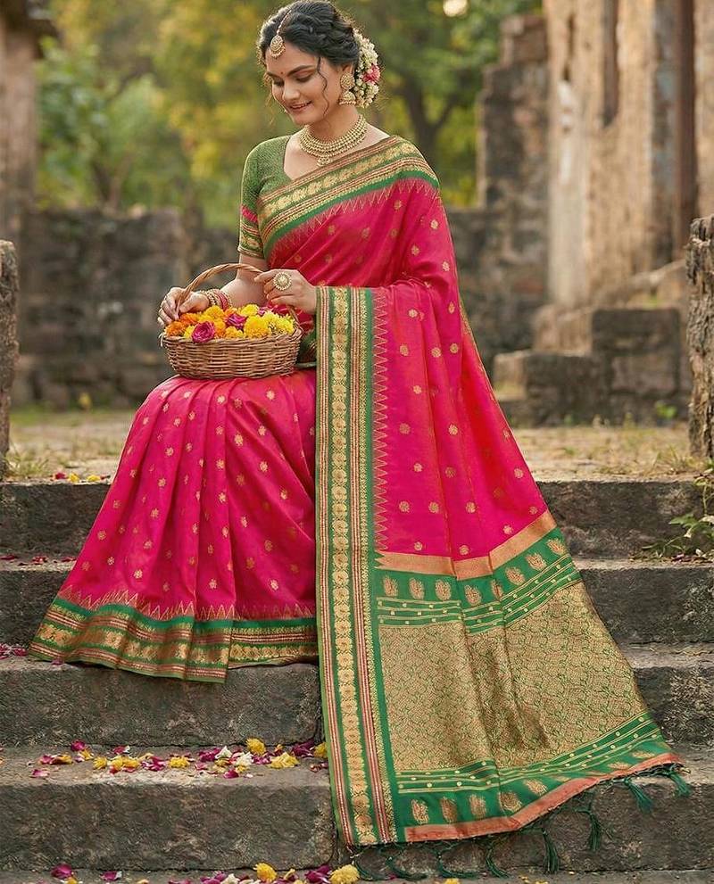 | Product Name | Pink Color Woven Work Soft Silk Party Wear Saree With Blouse | |