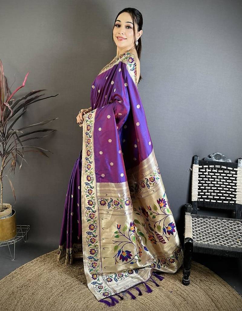 Product Name Purple Color Zari Woven Paithani Silk Saree With Blouse
