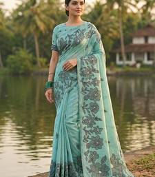 Product Name Sea Green Linen Cotton Print & Embroidered Work Saree With Blouse