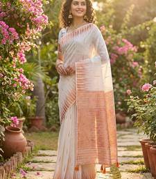 | Product Name | White Color Temple Border Zari Woven Linen Cotton Saree | |