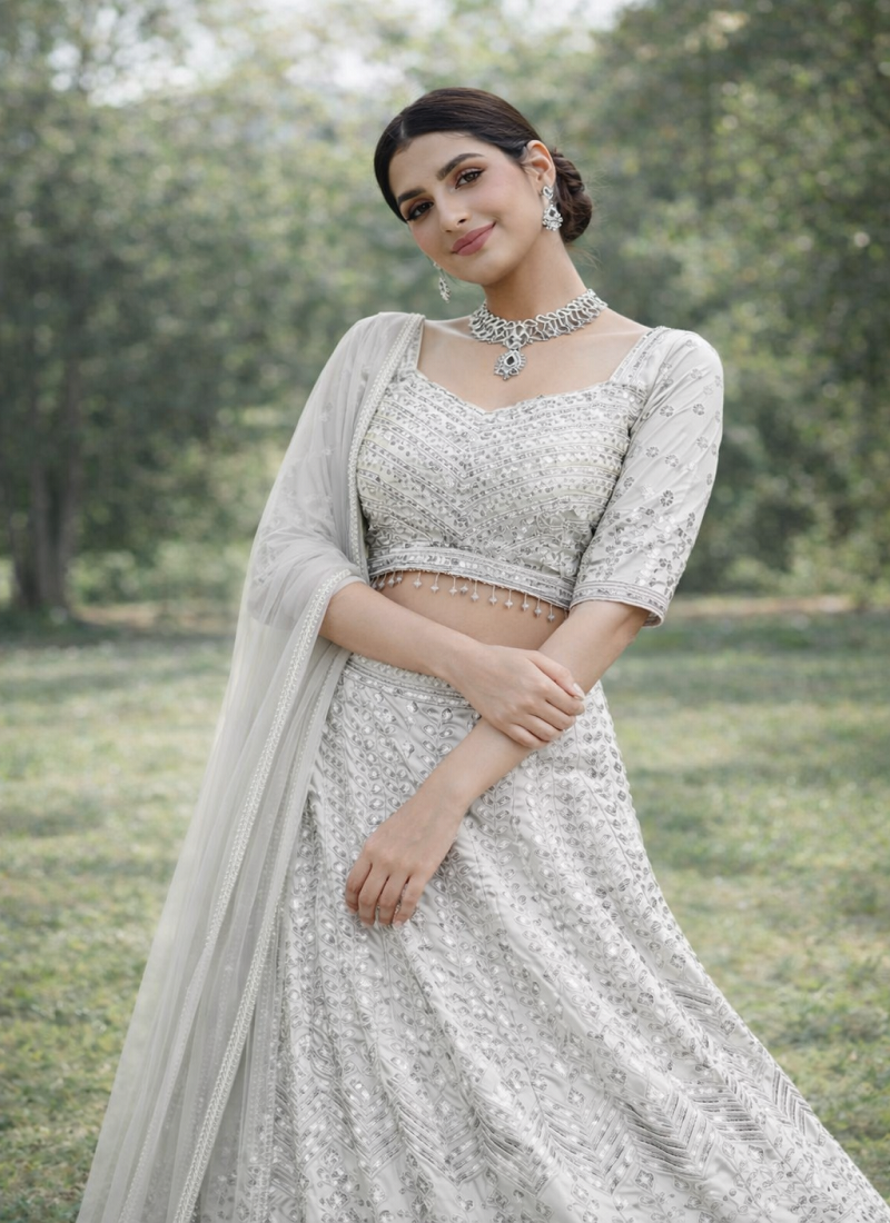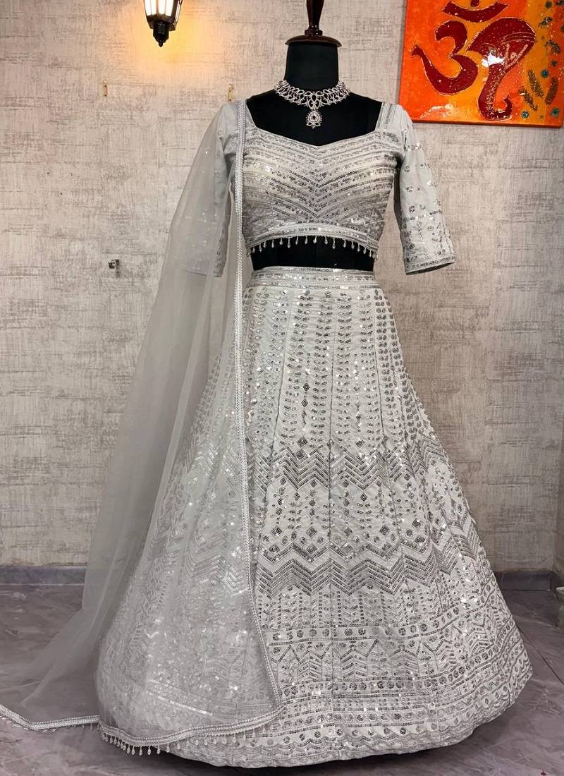 | Product Name | White Color Embroidery Sequins Work Faux Georgette Lehenga Choli Dupatta Set | |